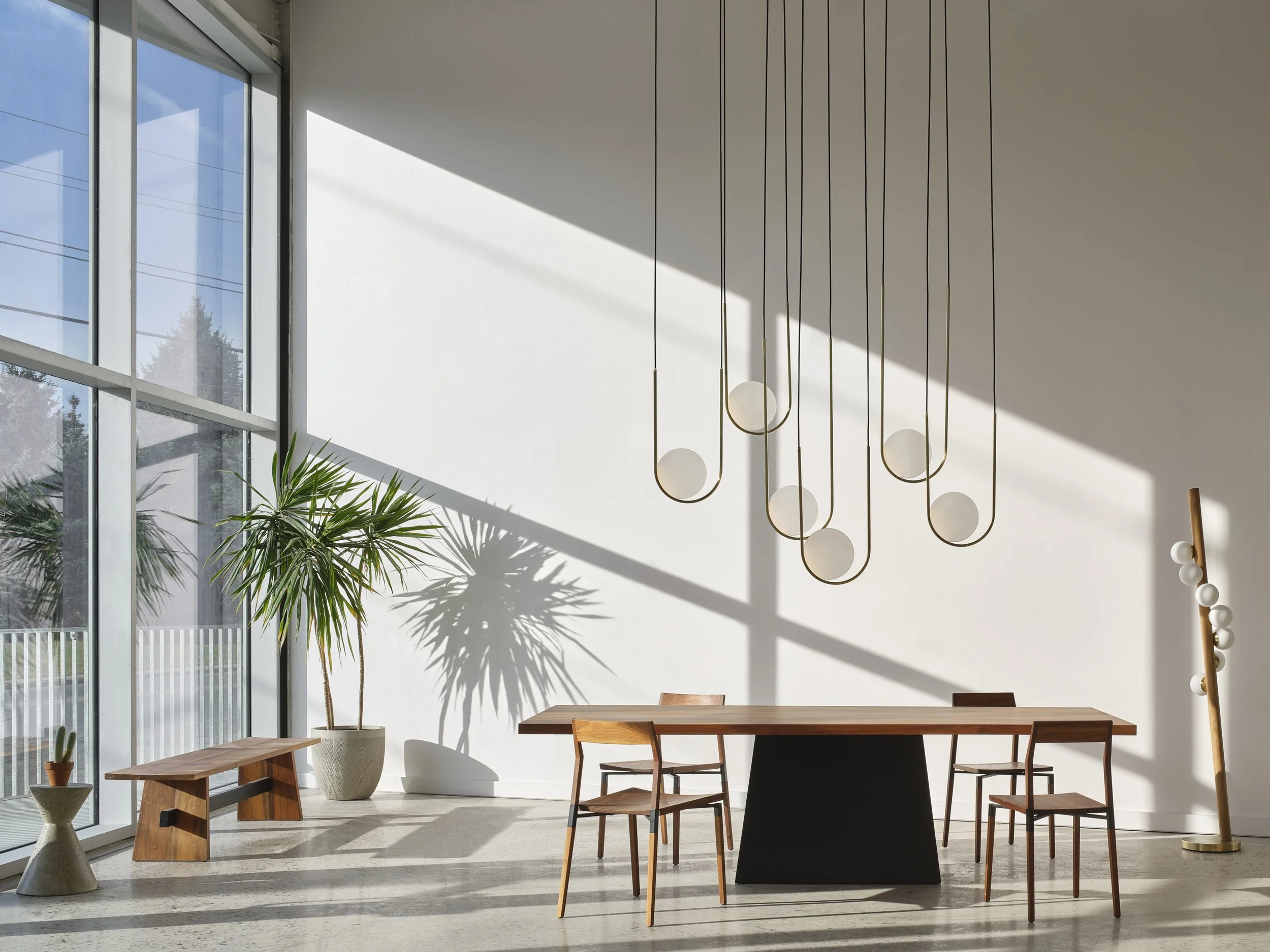 A new home for Hollis + Morris is inserted into an existing industrial space with a layering of program: fabrication, showroom, offices, and social spaces. The long space was split into a woodshop (dusty) zone and the assembly (clean) zone both ensuring natural light and a clear view of the green space across the street. A new mezzanine rests within the clean zone containing supporting programs of offices, kitchen, lounge areas, and a boardroom which cantilevers into the showroom. A long oak panel wall visually separates the assembly area from the showroom while maintaining a connection to the outside for all.
